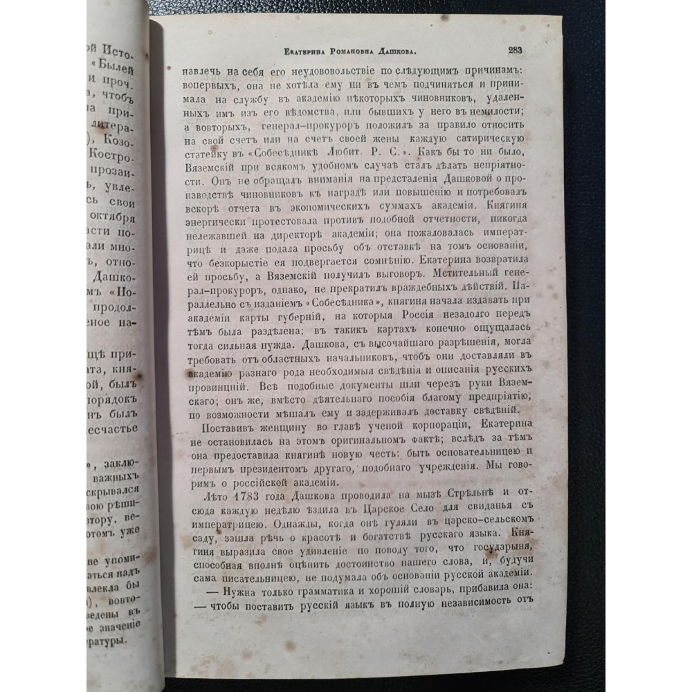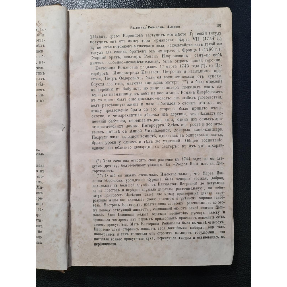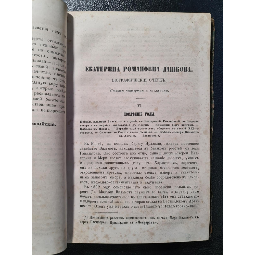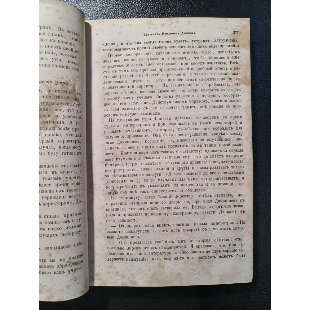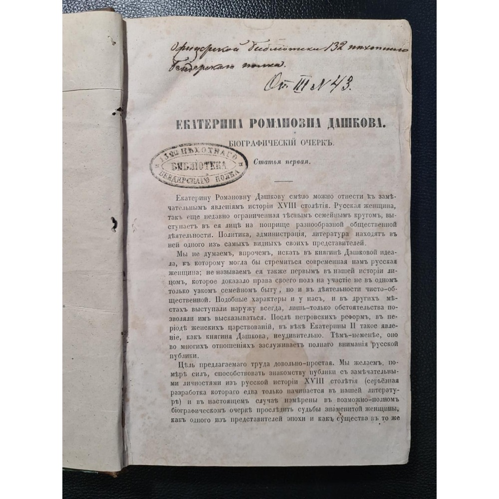 Книга «Катерина Романівна Дашкова: Біографічний нарис» була опублікована в журналі «Вітчизняні записки» у 1860 році.