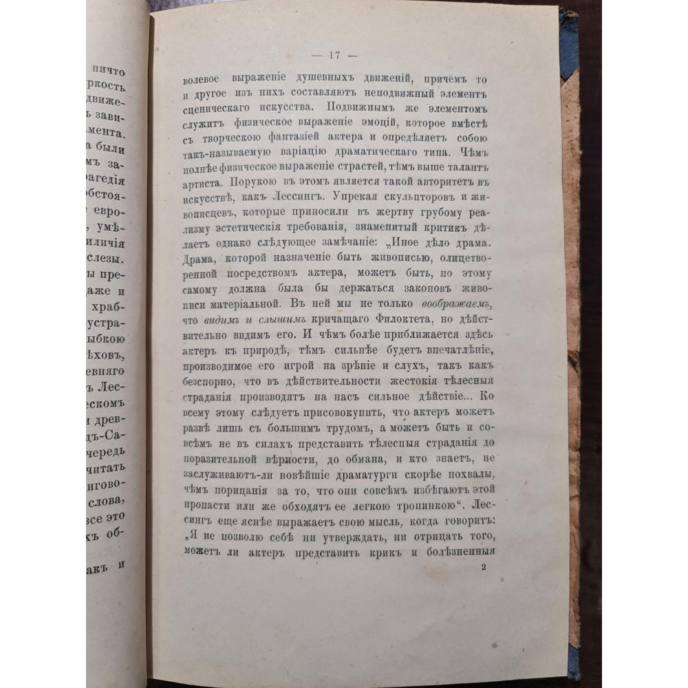 "Вчення про душевні рухи у застосуванні до сценічного мистецтва" - рідкісне і цінне видання 1891 року, присвячене мистецтву передачі емоцій на сцені. Автор книги, П. Серебряков, докладно аналізує психологію людських почуттів та їх зовнішнє вираження через міміку, жести та інтонацію, роблячи її незамінним посібником для акторів, режисерів та дослідників театрального мистецтва.