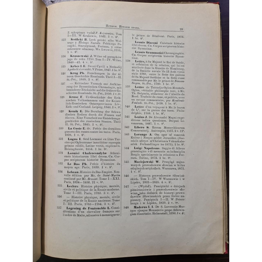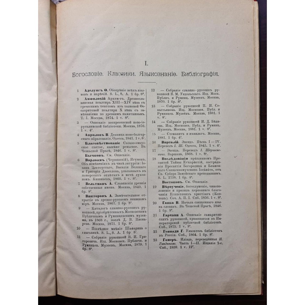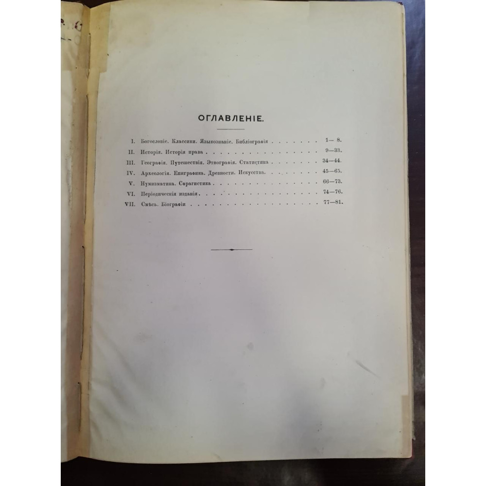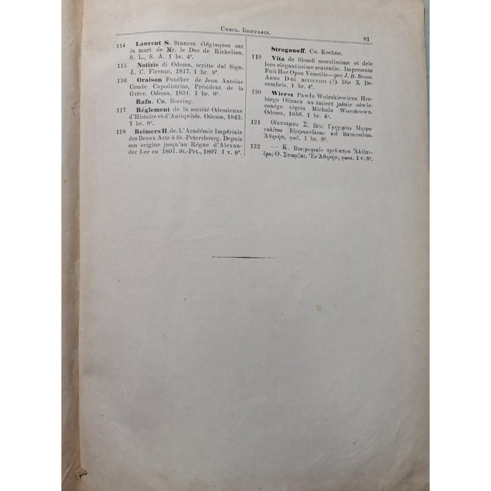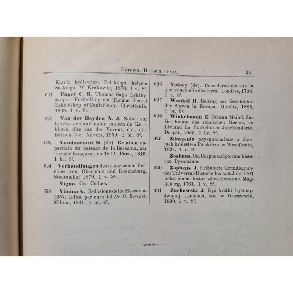 Рідкісне антикварне видання кінця XIX століття, що є офіційним каталогом бібліотеки Імператорського Одеського товариства історії та старожитностей. Видано 1893 року в Одесі.