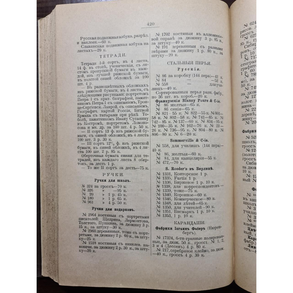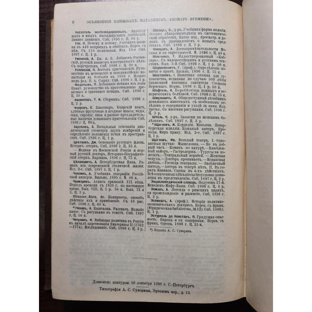 Рідкісне видання - оригінальний каталог книгарні "Нового часу" А. С. Суворіна, що охоплює період з 1878 по 1893 роки. Даний каталог є унікальним бібліографічним довідником кінця XIX століття, що включає перелік книг, доступних у продажу в одній з найбільших книжкових лавок Санкт-Петербурга того часу.