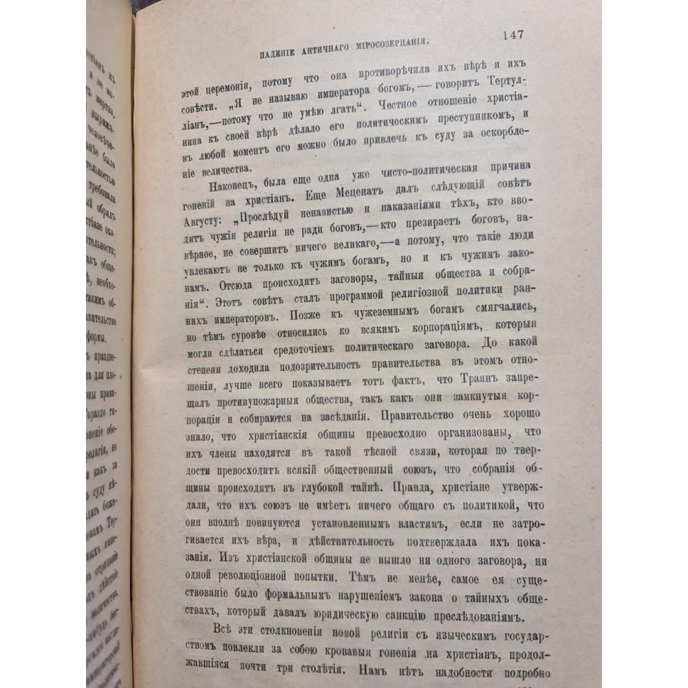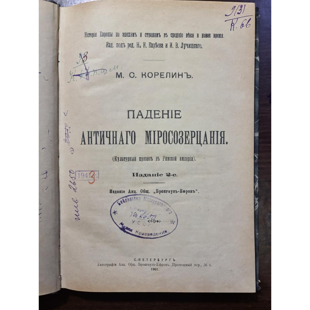 Рідкісне друге видання праці історика М. С. Кореліна, присвяченого культурній кризі в Римській імперії. Книга розглядає причини занепаду античного світогляду, переходу до середньовічного мислення та формування нових цивілізаційних цінностей.