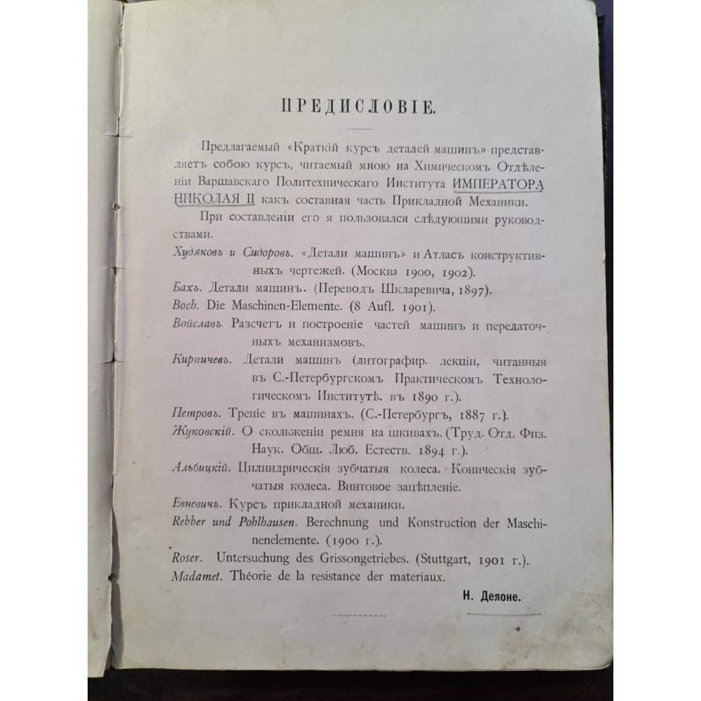 Рідкісне видання початку XX століття, присвячене конструюванню, розрахунку та проектування машинних деталей. Книга призначена для інженерів та техніків, які навчаються або працюють у галузі машинобудування. Автор - професор Варшавського політехнічного інституту Імператора Миколи II Н. Б. Делоне - відомий своїми працями в галузі механіки та машинобудування.