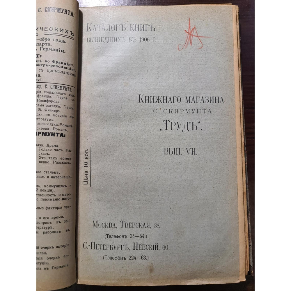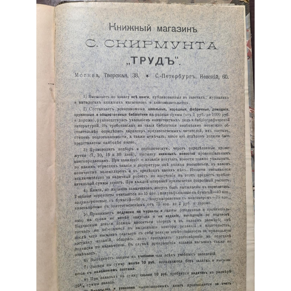 Рідкісний каталог книг початку XX століття, виданий у 1905 році книгарнею С. Скірмунта "Праця".