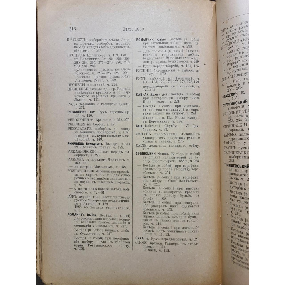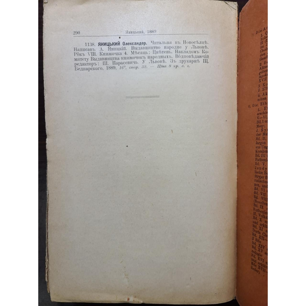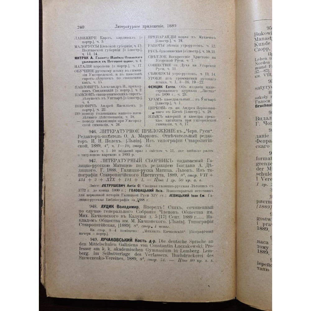 Унікальне бібліографічне видання, підготовлене Іваном Левицьким, містить перелік україномовних друкованих видань, що виходили на території Австро-Угорщини в період 1887–1900 років. Книга є першим томом серії та охоплює роки 1887–1889.