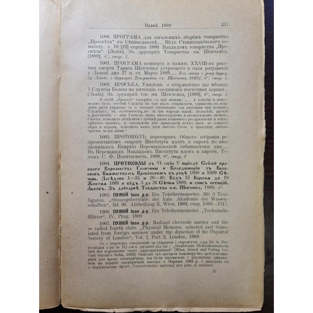 Видання було надруковане в друкарні Наукового товариства імені Шевченка у Львові в 1909 році. Це цінне джерело для істориків, літературознавців та бібліофілів, що досліджують українську друковану спадщину кінця XIX – початку XX століття.