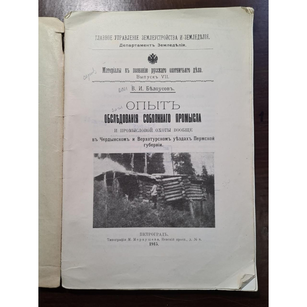 Рідкісне дореволюційне видання, присвячене дослідженню соболиного промислу та полювання в Пермській губернії початку XX століття. Книга являє собою цінне джерело інформації про традиції російської мисливської справи, особливості звіроловства, а також економічні та природні аспекти промислу.
