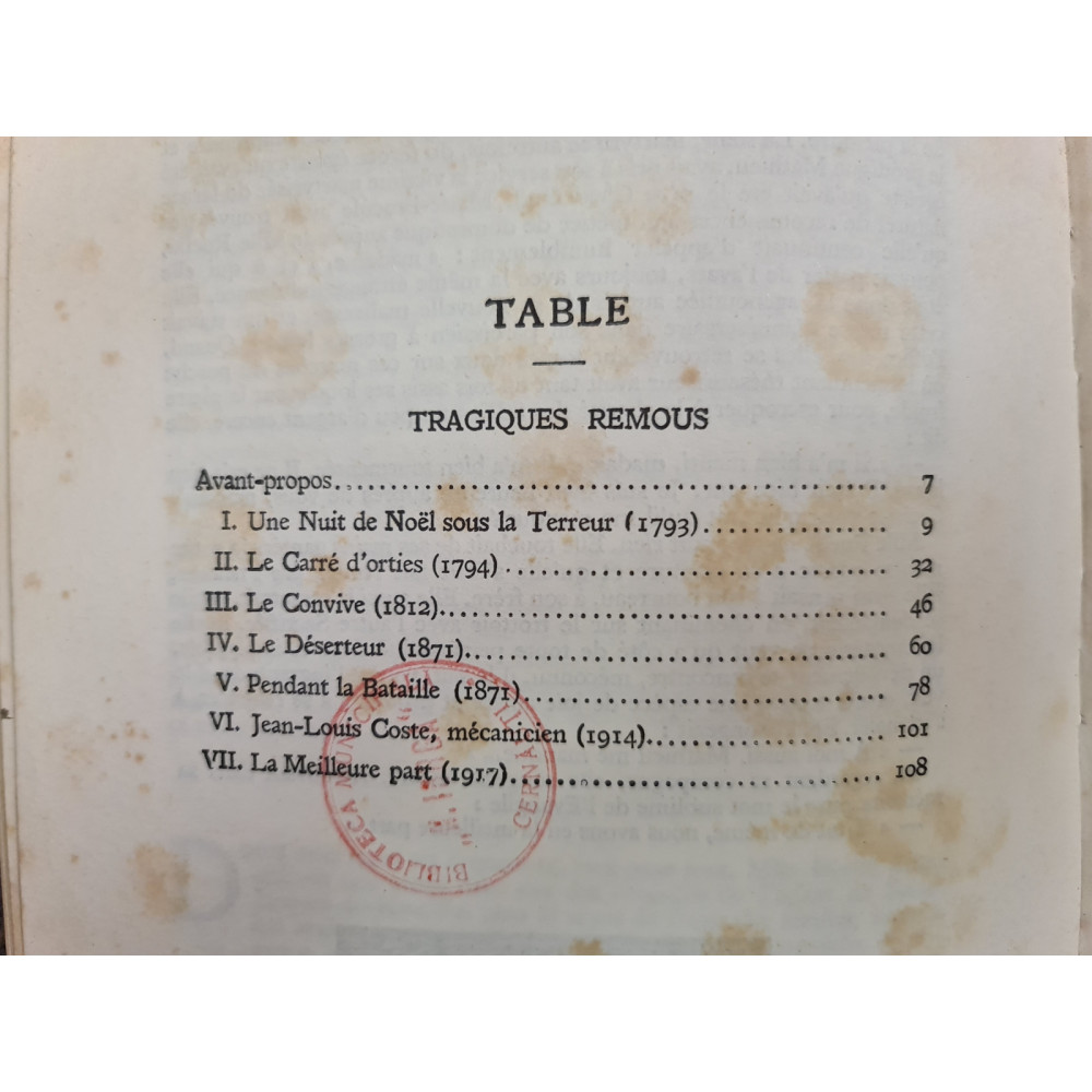 Пропонується до продажу рідкісне видання книги Tragiques Remous знаменитого французького письменника Поля Бурже, члена Французької академії. Цей твір оформлено двадцятьма оригінальними гравюрами на дереві, виконаними художником Г. Жанніо.